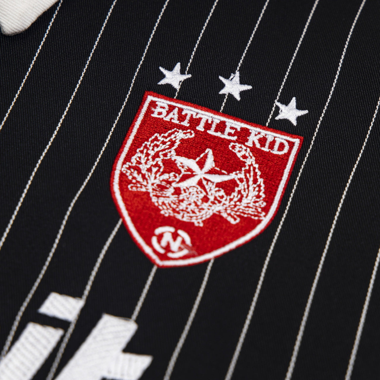 Alphabet badge embroidery contrasting striped jersey sweater jacket "LIMITED EDITION"