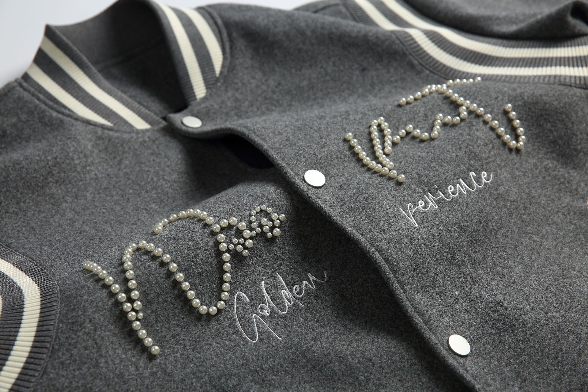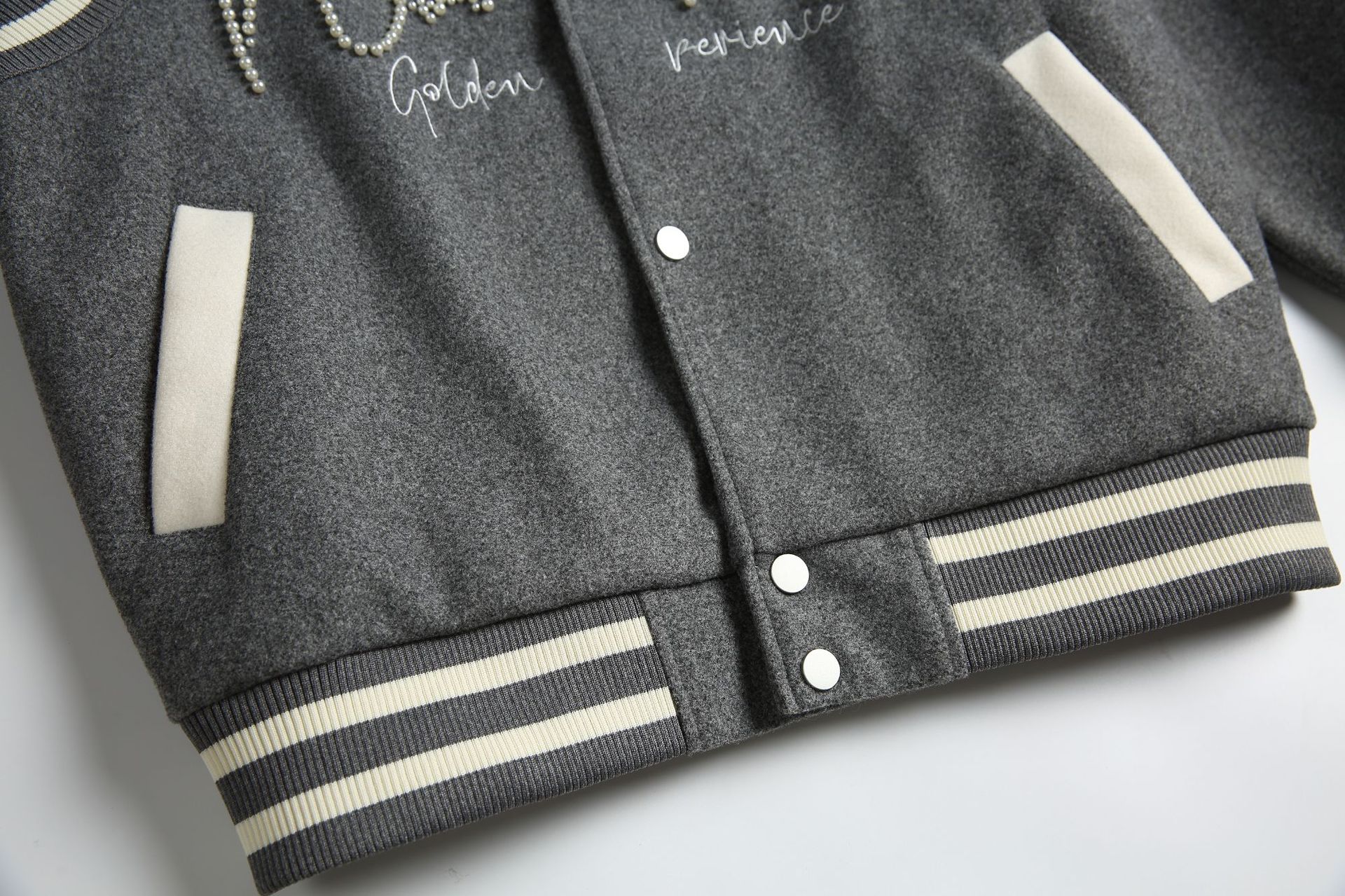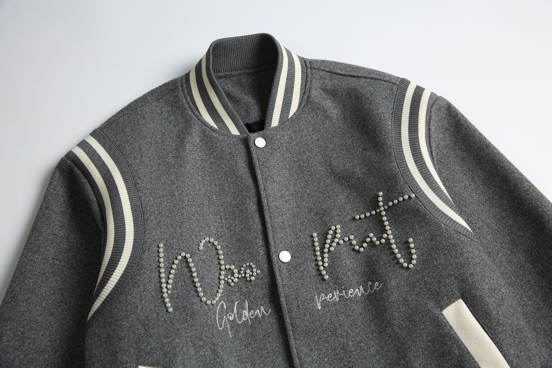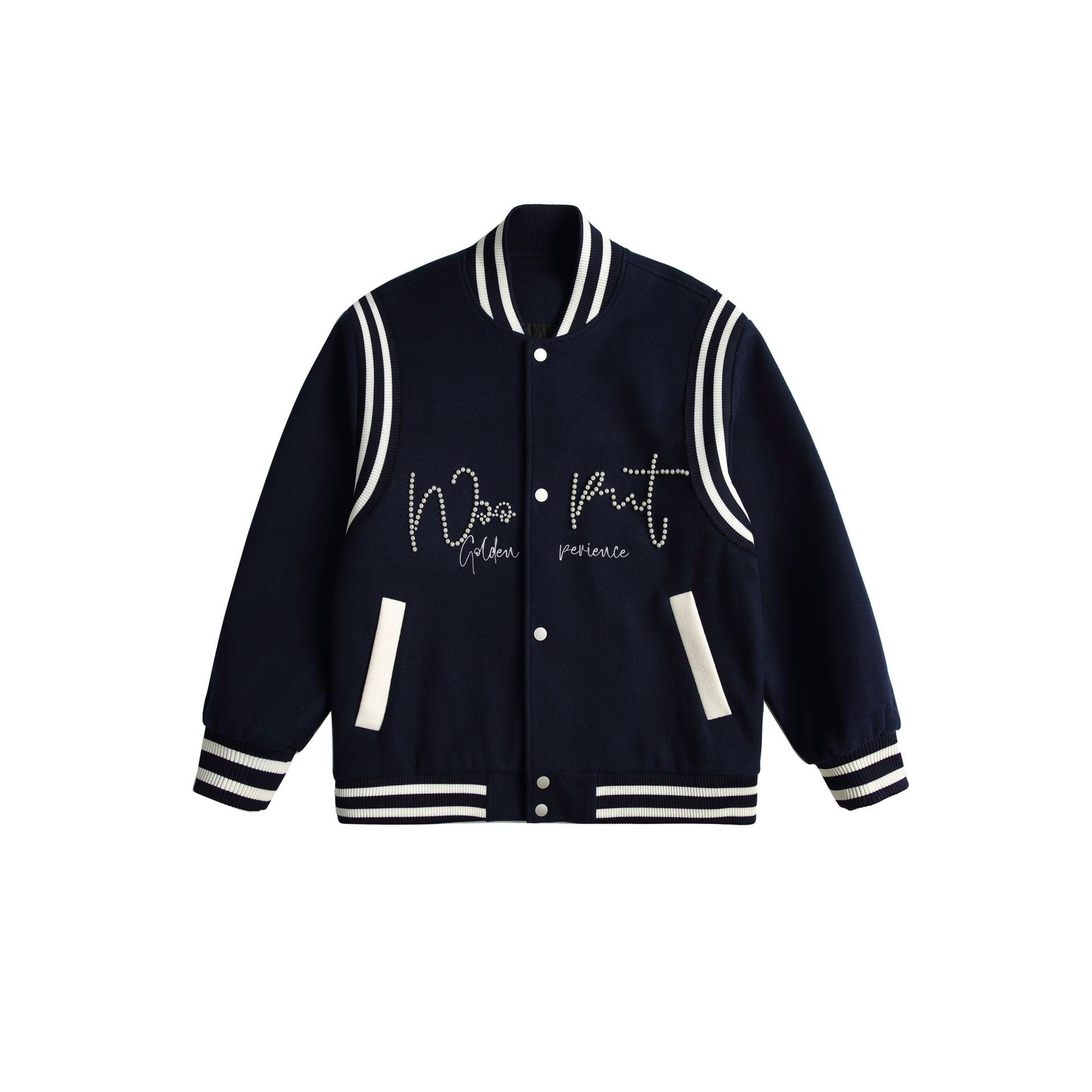 Retro studded embroidered contrasting woolen baseball jersey jacket "LIMITED EDITION"